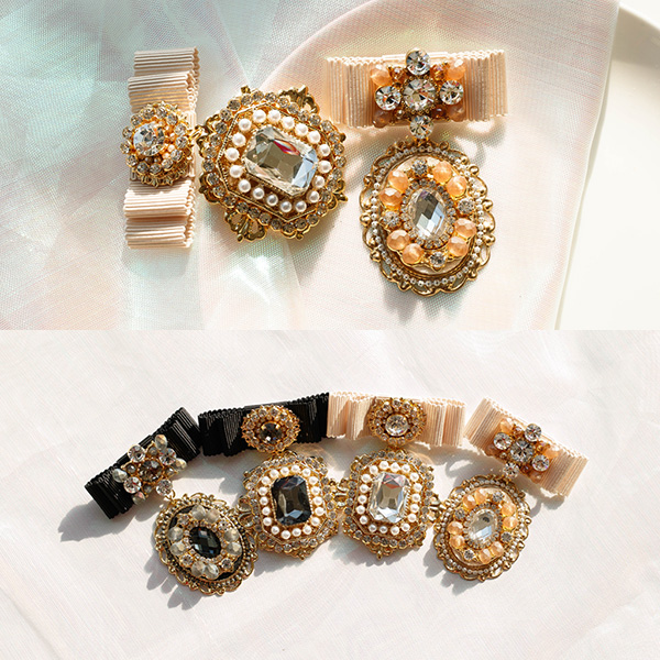 Brass + Platinum Plating, Fabric, Cubic, Crystal, Pearl, Beads